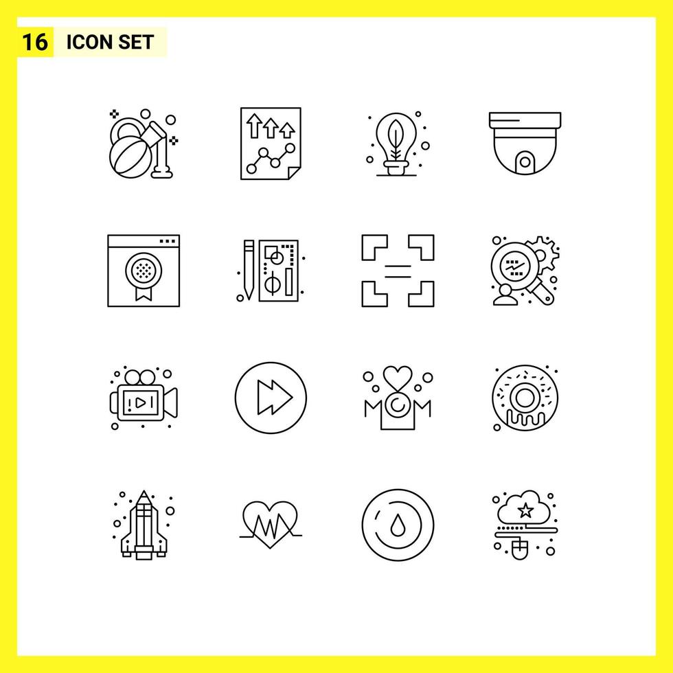 16 Universal Outlines Set for Web and Mobile Applications browser surveillance earth security cam Editable Vector Design Elements