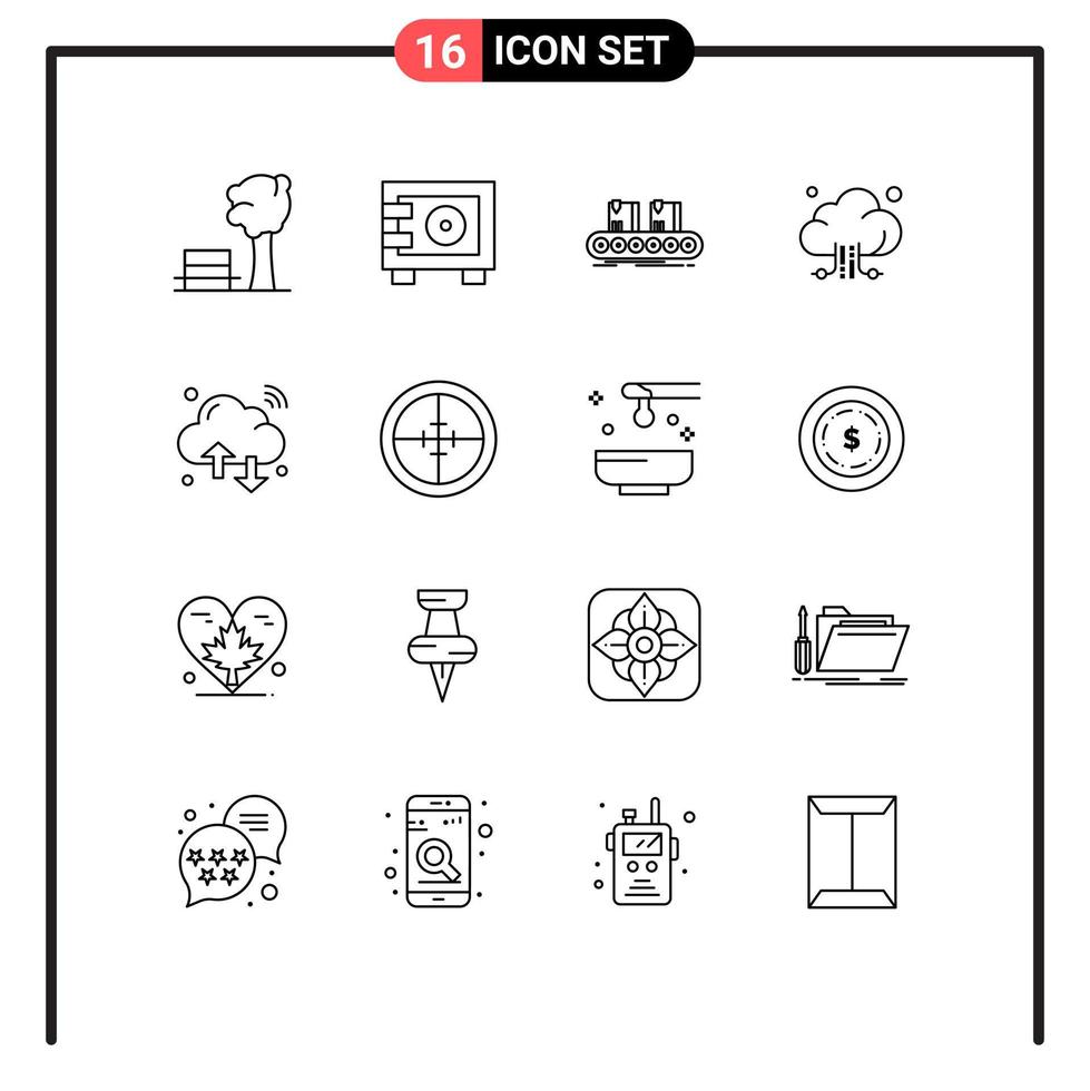 16 Outline concept for Websites Mobile and Apps cloud storage belt connection line Editable Vector Design Elements Free Vector
