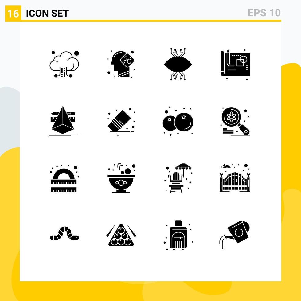 16 Universal Solid Glyphs Set for Web and Mobile Applications designer sketch infrastructure process eye Editable Vector Design Elements Free Vector
