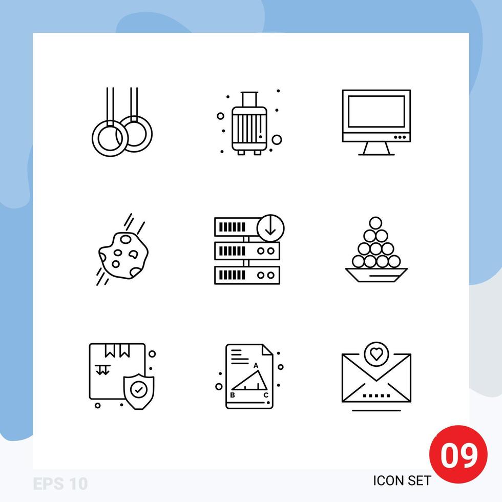 Pack of 9 Modern Outlines Signs and Symbols for Web Print Media such as comet meteor computer astronomy pc Editable Vector Design Elements