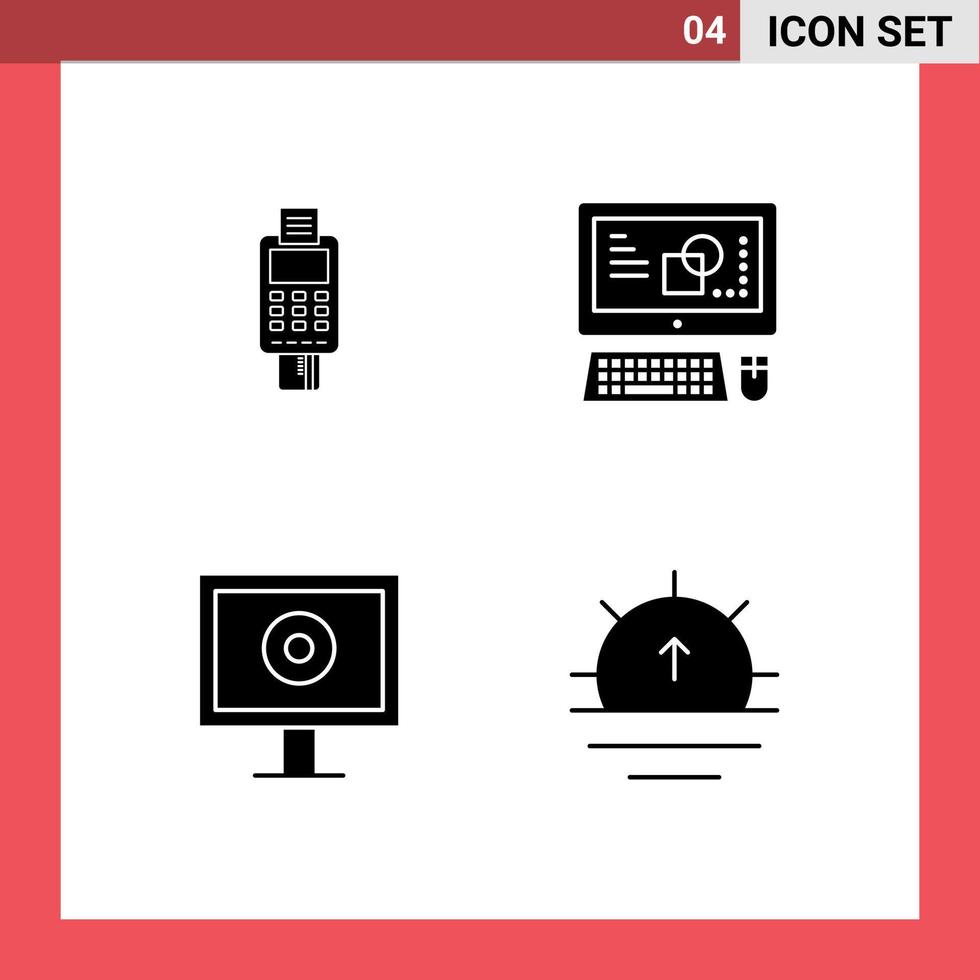 User Interface Pack of 4 Basic Solid Glyphs of machine creative check payment display Editable Vector Design Elements