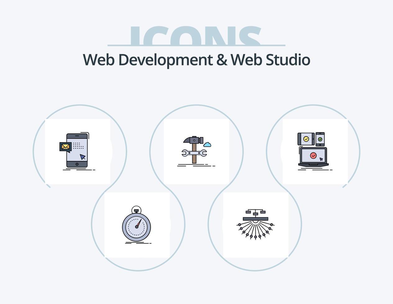 Web Development And Web Studio Line Filled Icon Pack 5 Icon Design. design. drag. page. screen. computer vector