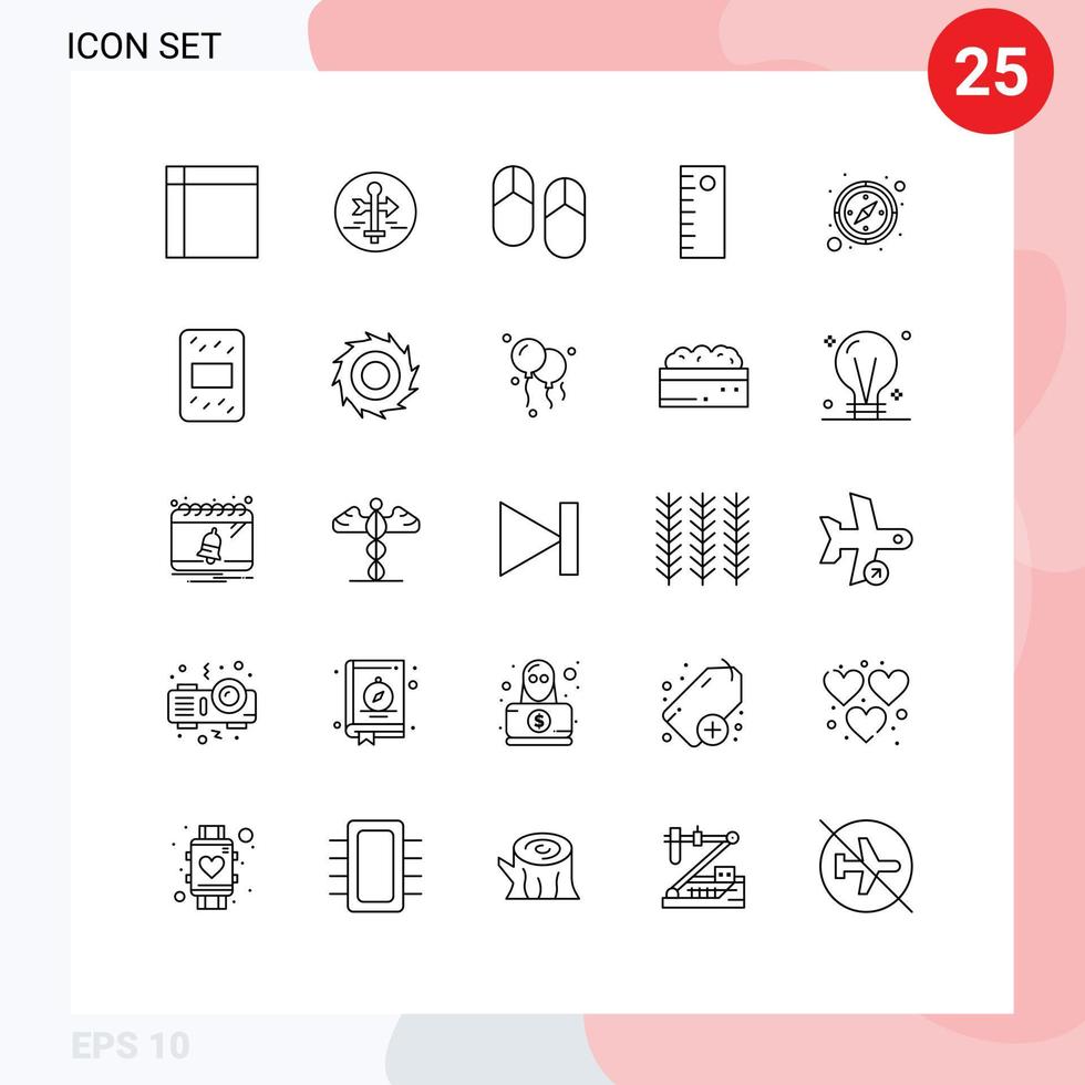 Modern Set of 25 Lines and symbols such as direction tool map pointer ruler picnic Editable Vector Design Elements