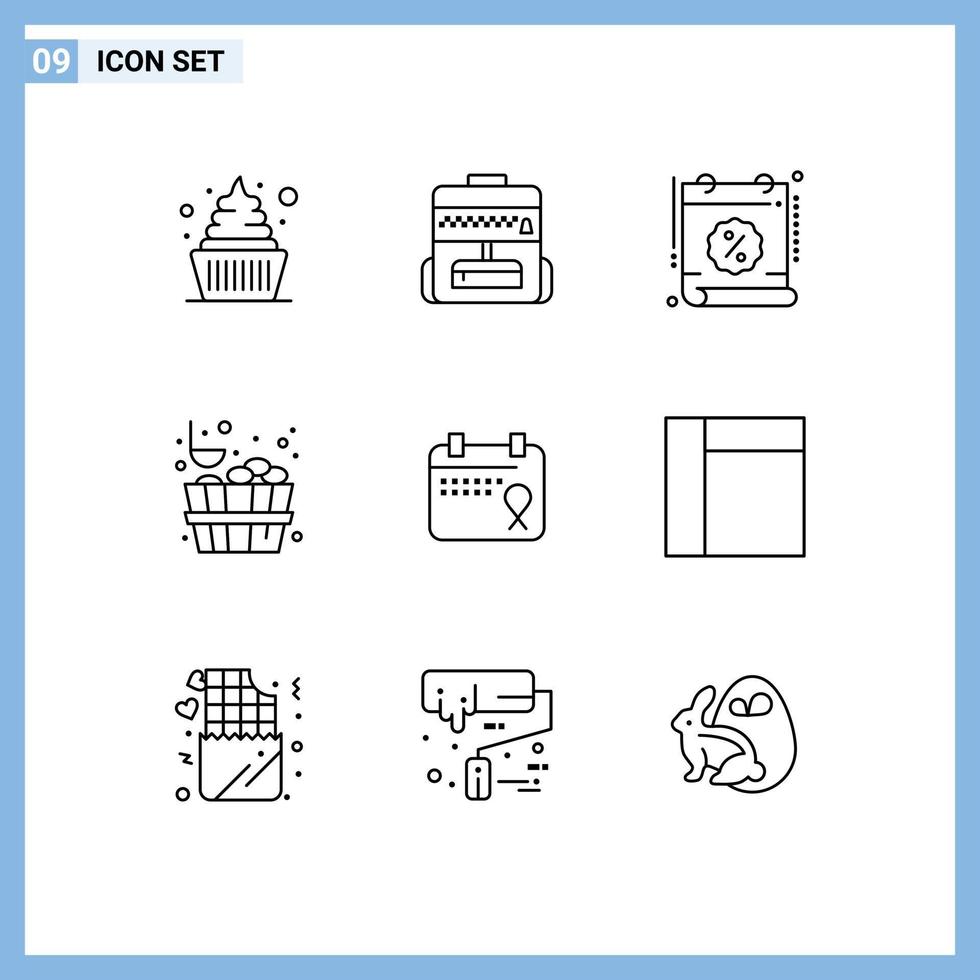 9 Outline concept for Websites Mobile and Apps operation calendar date stone bucket Editable Vector Design Elements Free Vector