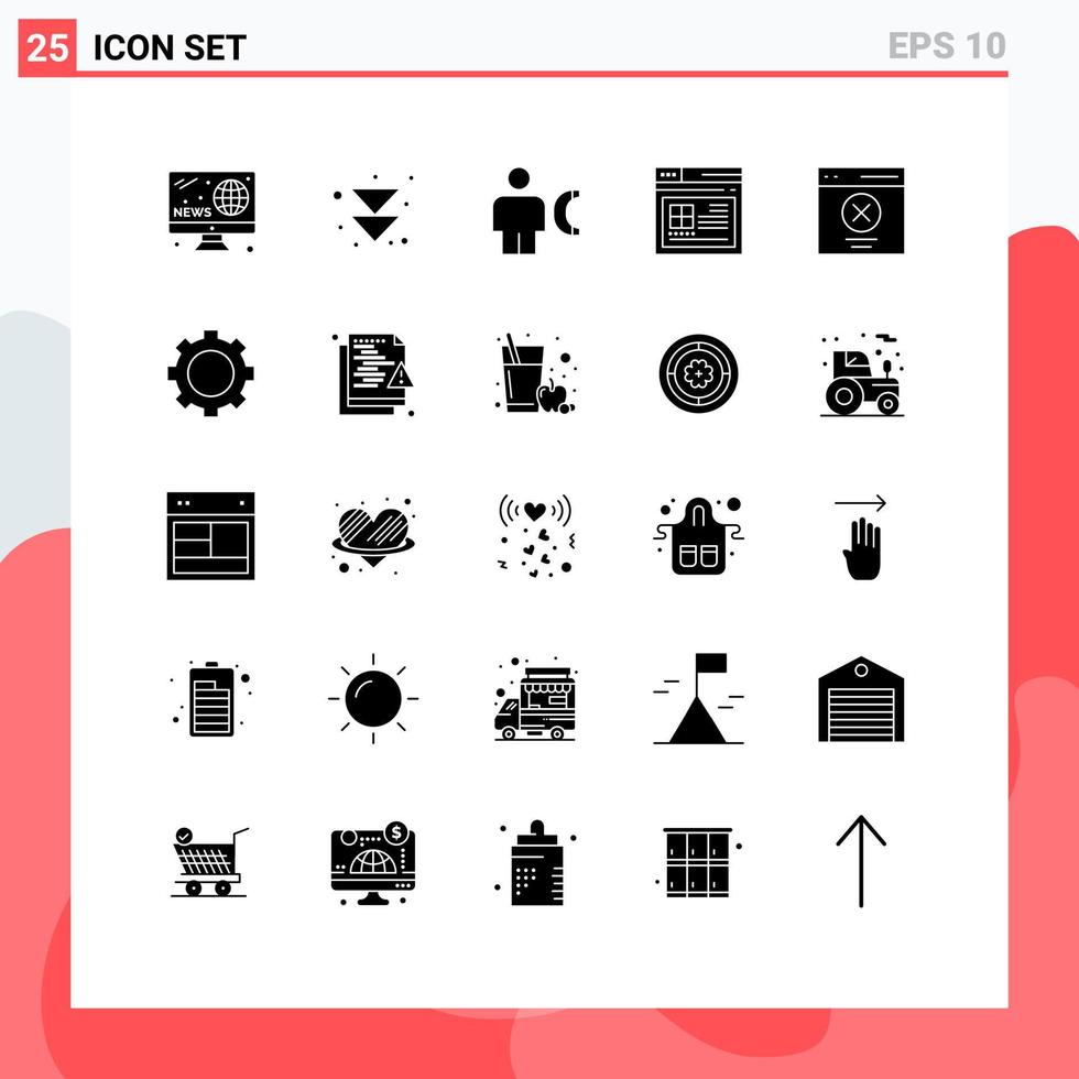 Mobile Interface Solid Glyph Set of 25 Pictograms of error website body web internet Editable Vector Design Elements