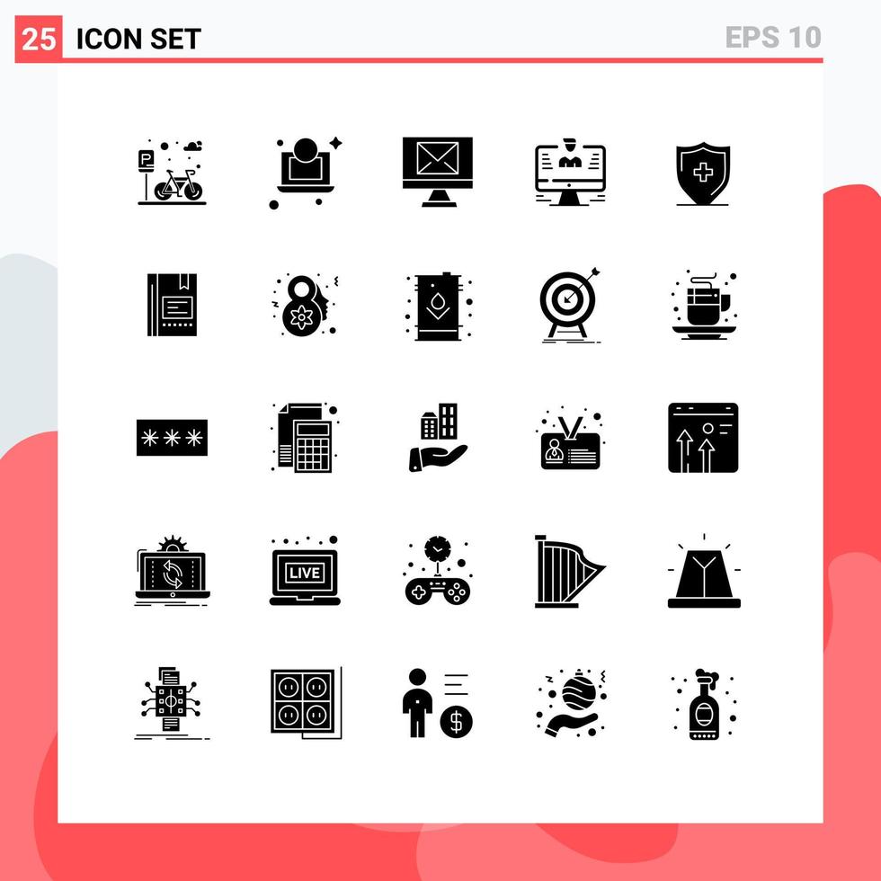 25 Universal Solid Glyphs Set for Web and Mobile Applications board hospital email profile data Editable Vector Design Elements