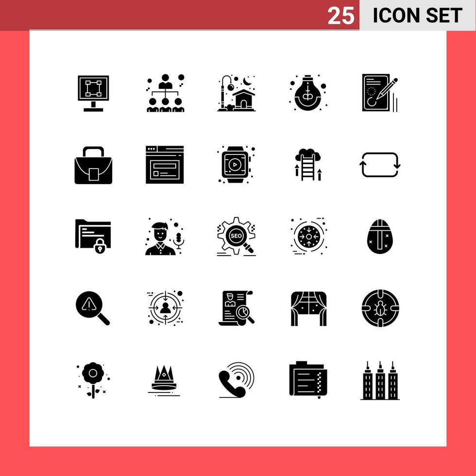 User Interface Pack of 25 Basic Solid Glyphs of study idea share growth moon Editable Vector Design Elements Free Vector