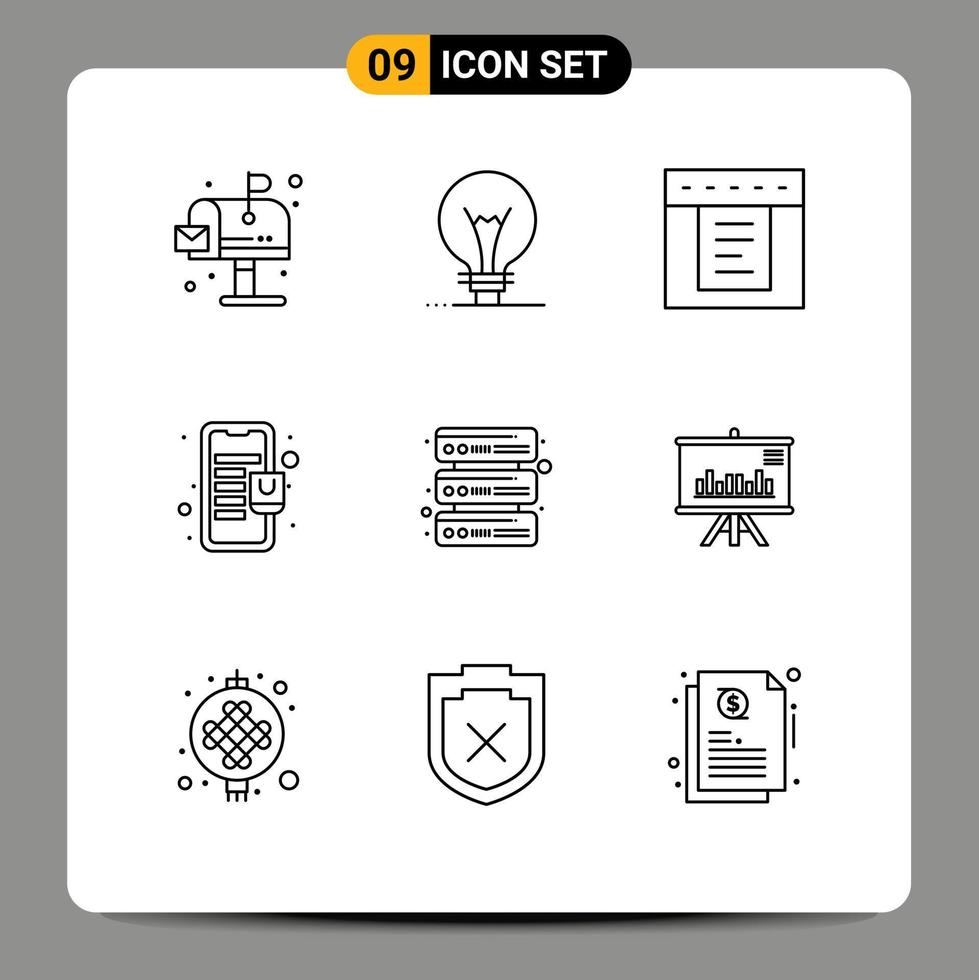9 Outline concept for Websites Mobile and Apps network database dropdown online store mall Editable Vector Design Elements Free Vector