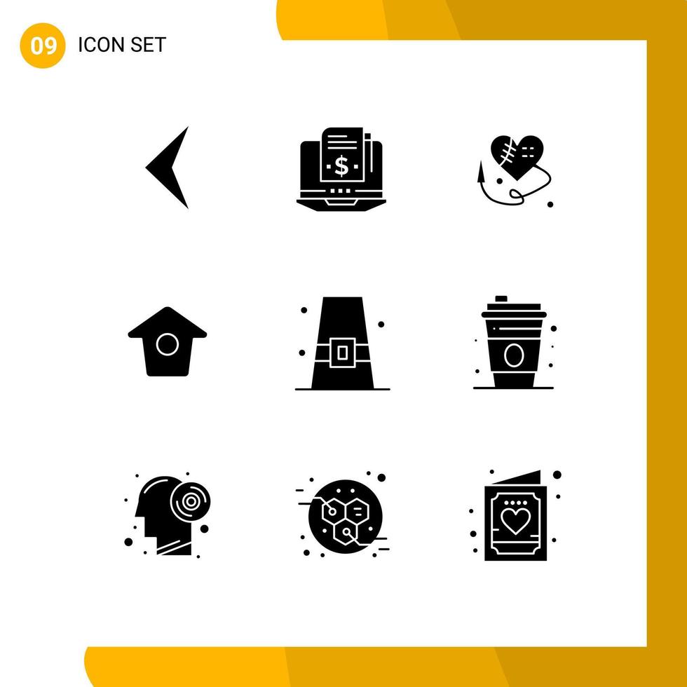 9 Thematic Vector Solid Glyphs and Editable Symbols of hat cap broken heart buckle twitter Editable Vector Design Elements