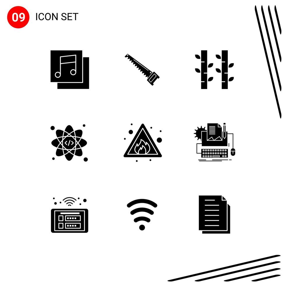 Pictogram Set of 9 Simple Solid Glyphs of risk alert bamboo coding web Editable Vector Design Elements
