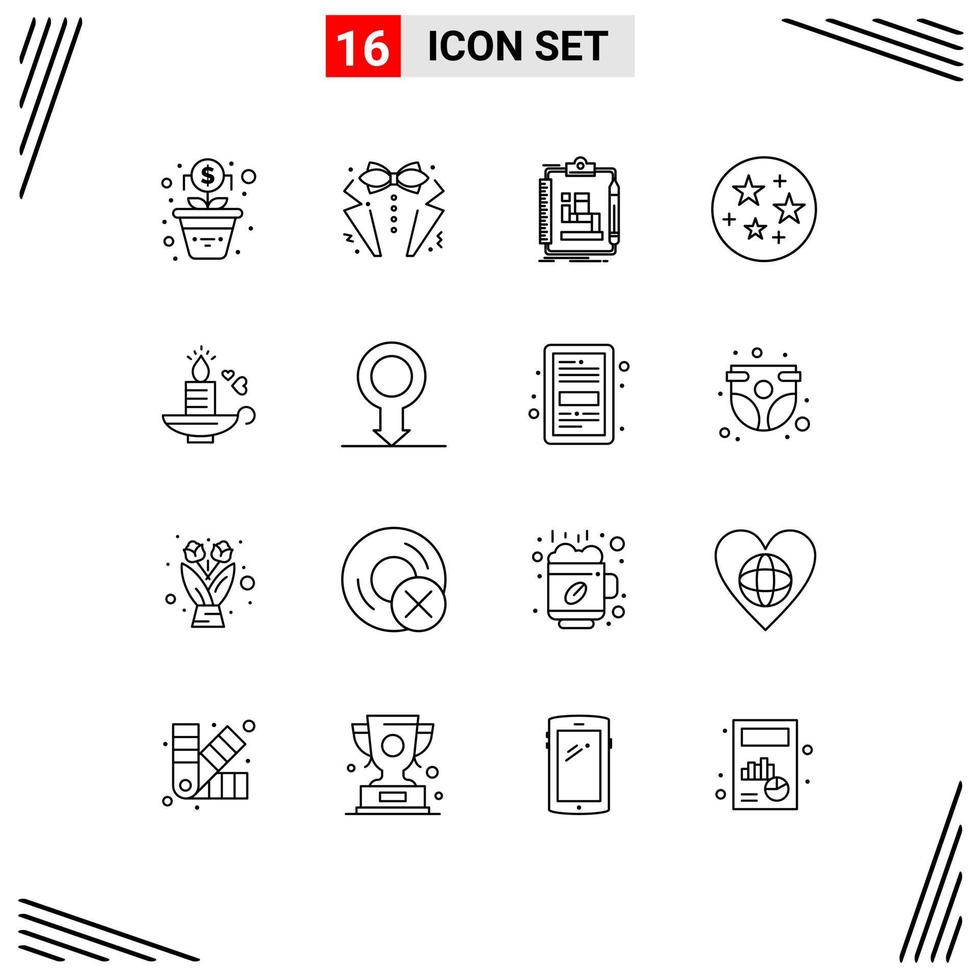 User Interface Pack of 16 Basic Outlines of love stars algorithm space workflow Editable Vector Design Elements