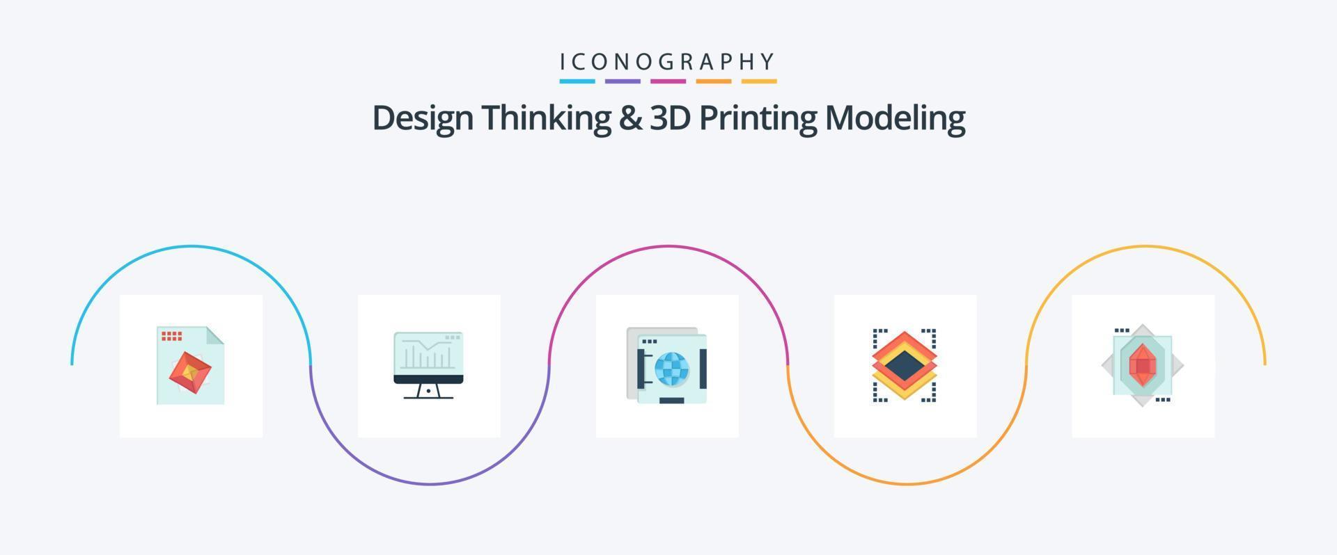 Design Thinking And D Printing Modeling Flat 5 Icon Pack Including core. server. brower. . s vector