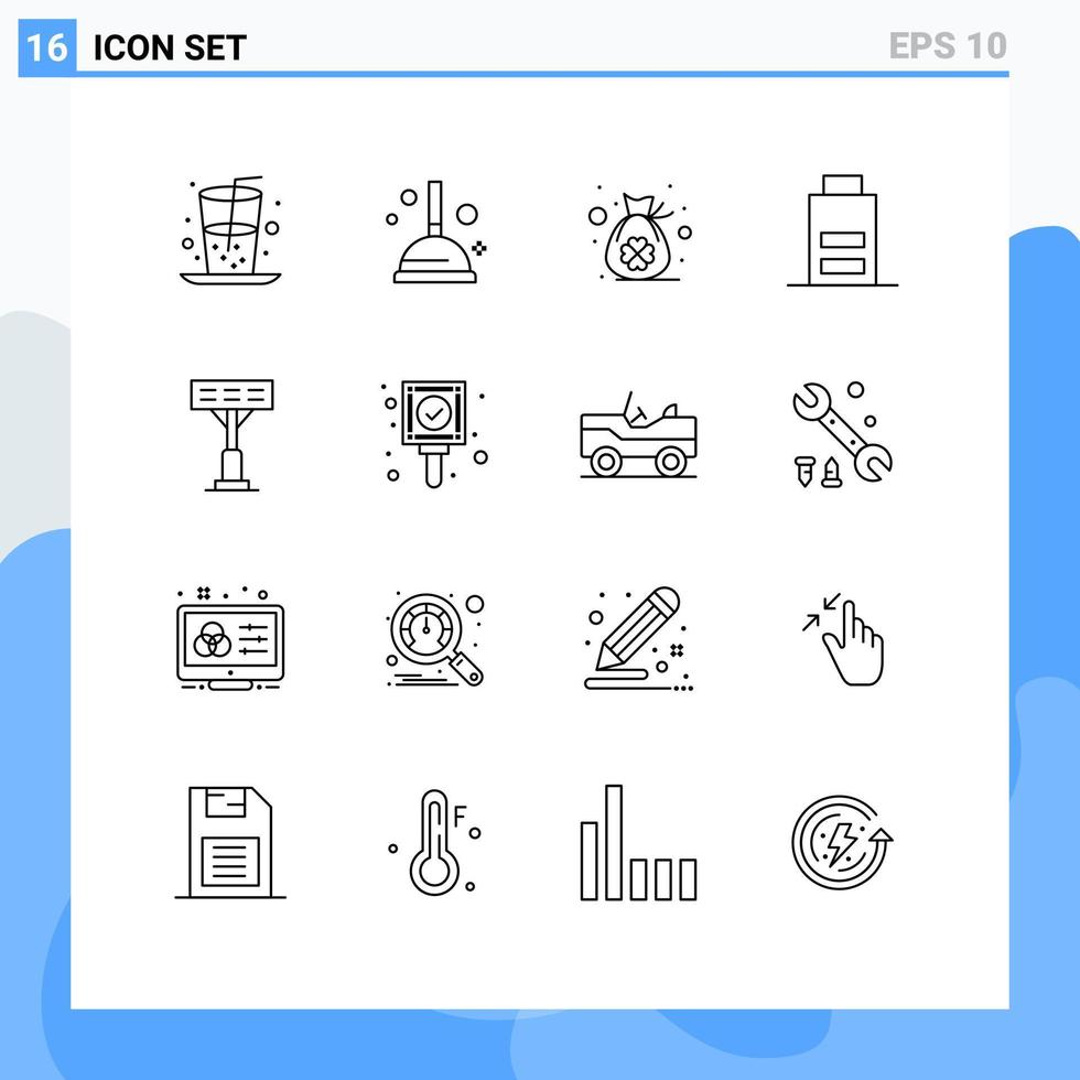 Modern Set of 16 Outlines and symbols such as stadium construction bag of clover user interface Editable Vector Design Elements