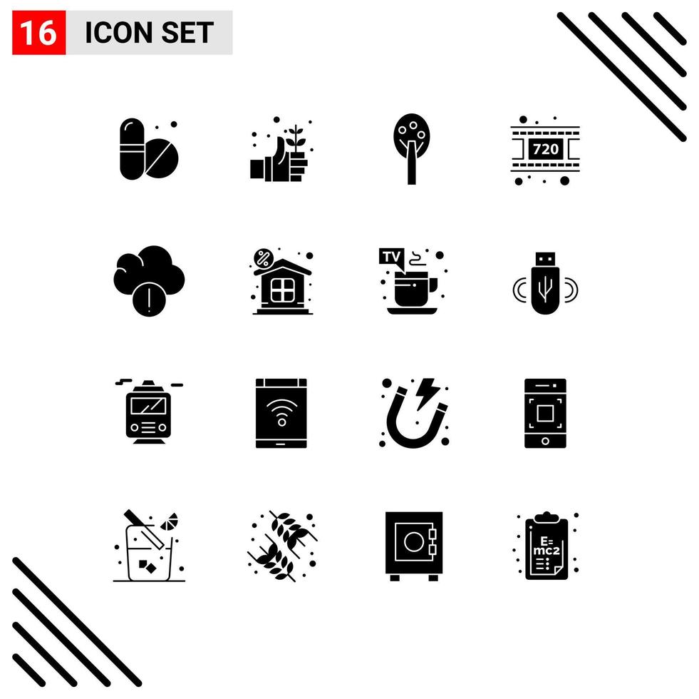 16 Universal Solid Glyphs Set for Web and Mobile Applications finance data summer cloud video Editable Vector Design Elements Free Vector