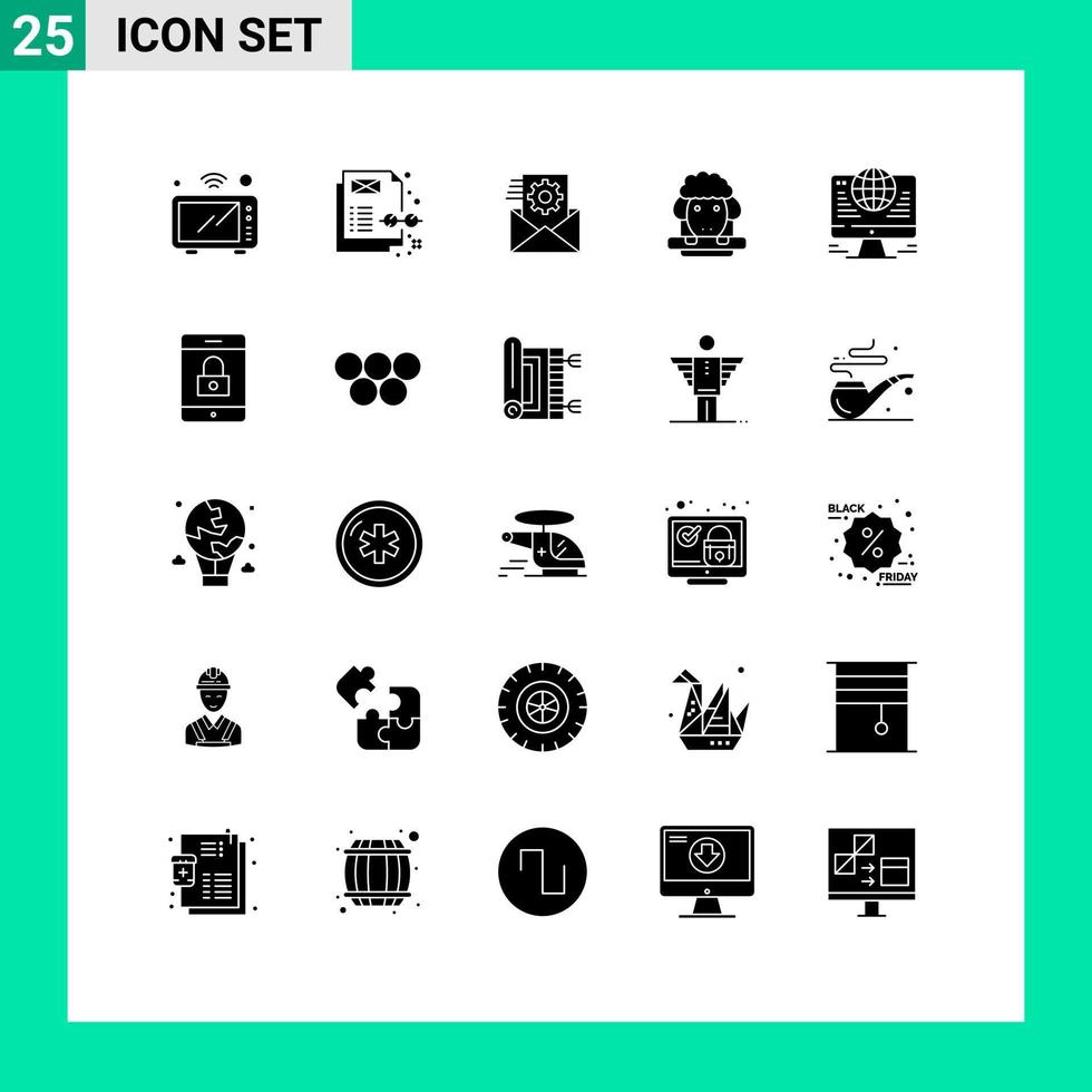 Pack of 25 Modern Solid Glyphs Signs and Symbols for Web Print Media such as connection spring data sheep easter Editable Vector Design Elements Free Vector