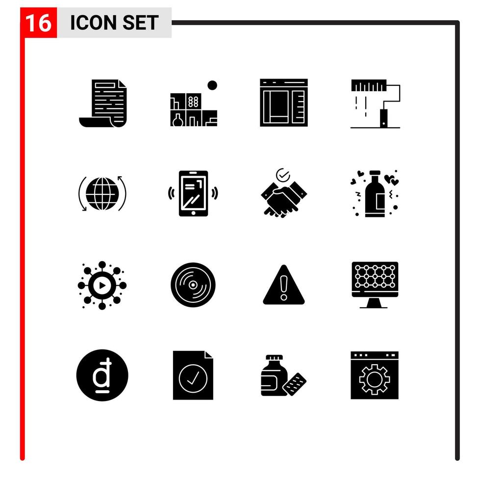Mobile Interface Solid Glyph Set of 16 Pictograms of globe programing develop paint design Editable Vector Design Elements
