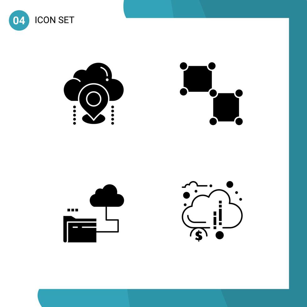 4 Universal Solid Glyphs Set for Web and Mobile Applications location cloud map connection storage Editable Vector Design Elements