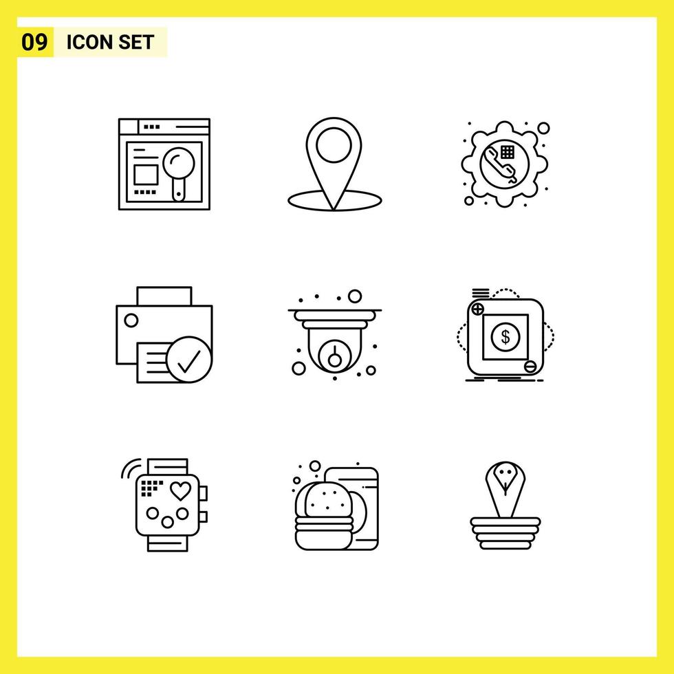 Pictogram Set of 9 Simple Outlines of cam gadget call devices computers Editable Vector Design Elements