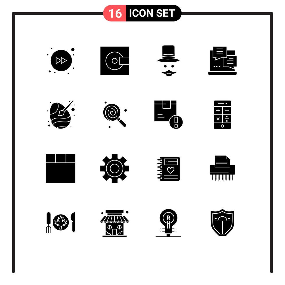 User Interface Pack of 16 Basic Solid Glyphs of paint brush script moustache internet men Editable Vector Design Elements Free Vector