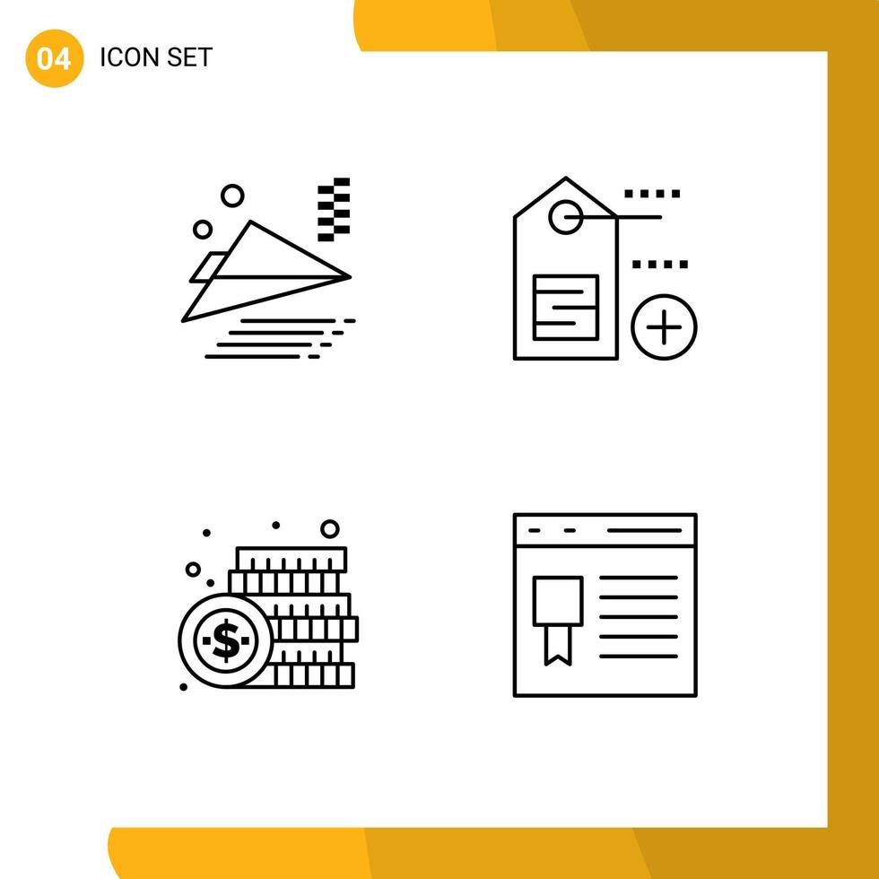 Mobile Interface Line Set of 4 Pictograms of airplane money add coin browser Editable Vector Design Elements Free Vector