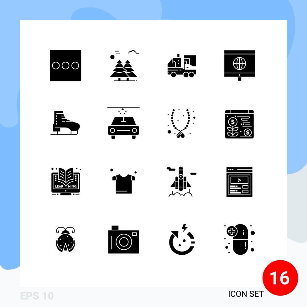 User Interface Pack of 16 Basic Solid Glyphs of skate boot biology learning computer Editable Vector Design Elements Free Vector