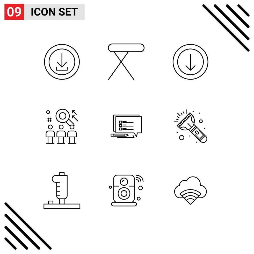 User Interface Pack of 9 Basic Outlines of chat user table team rescource Editable Vector Design Elements Free Vector