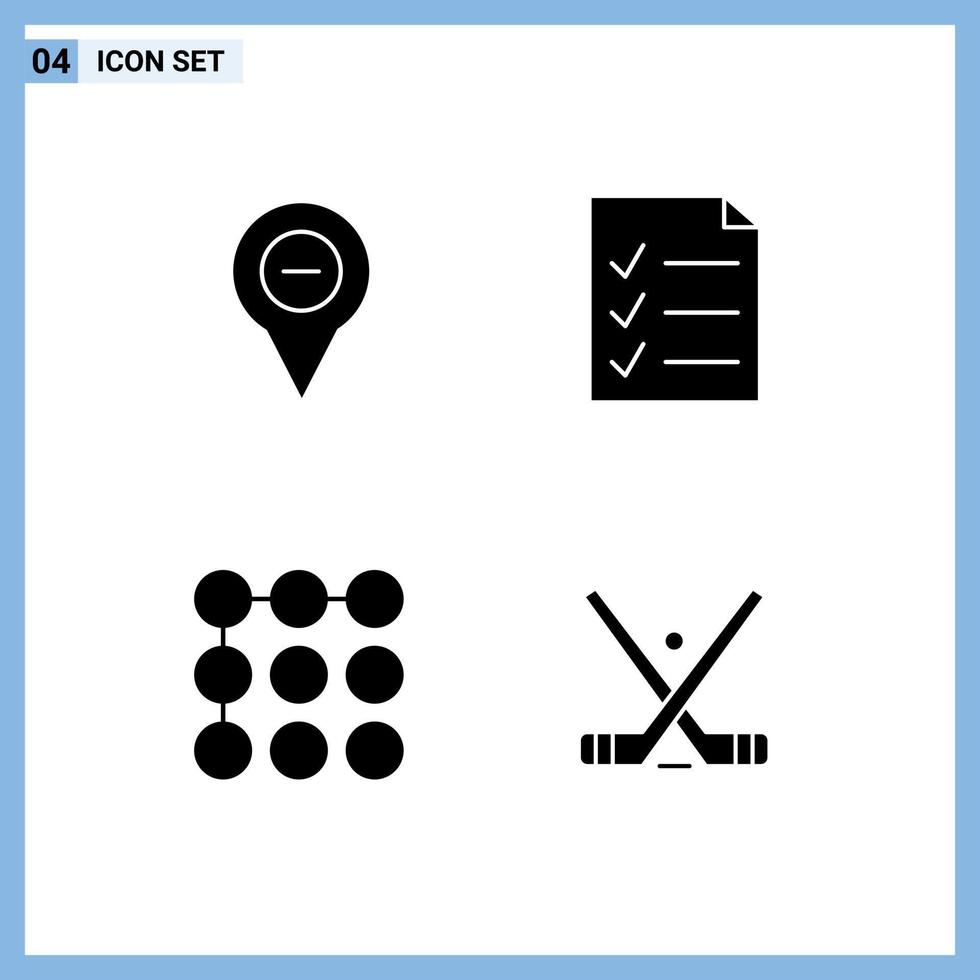 Modern Set of 4 Solid Glyphs and symbols such as location pattern pin file emblem Editable Vector Design Elements