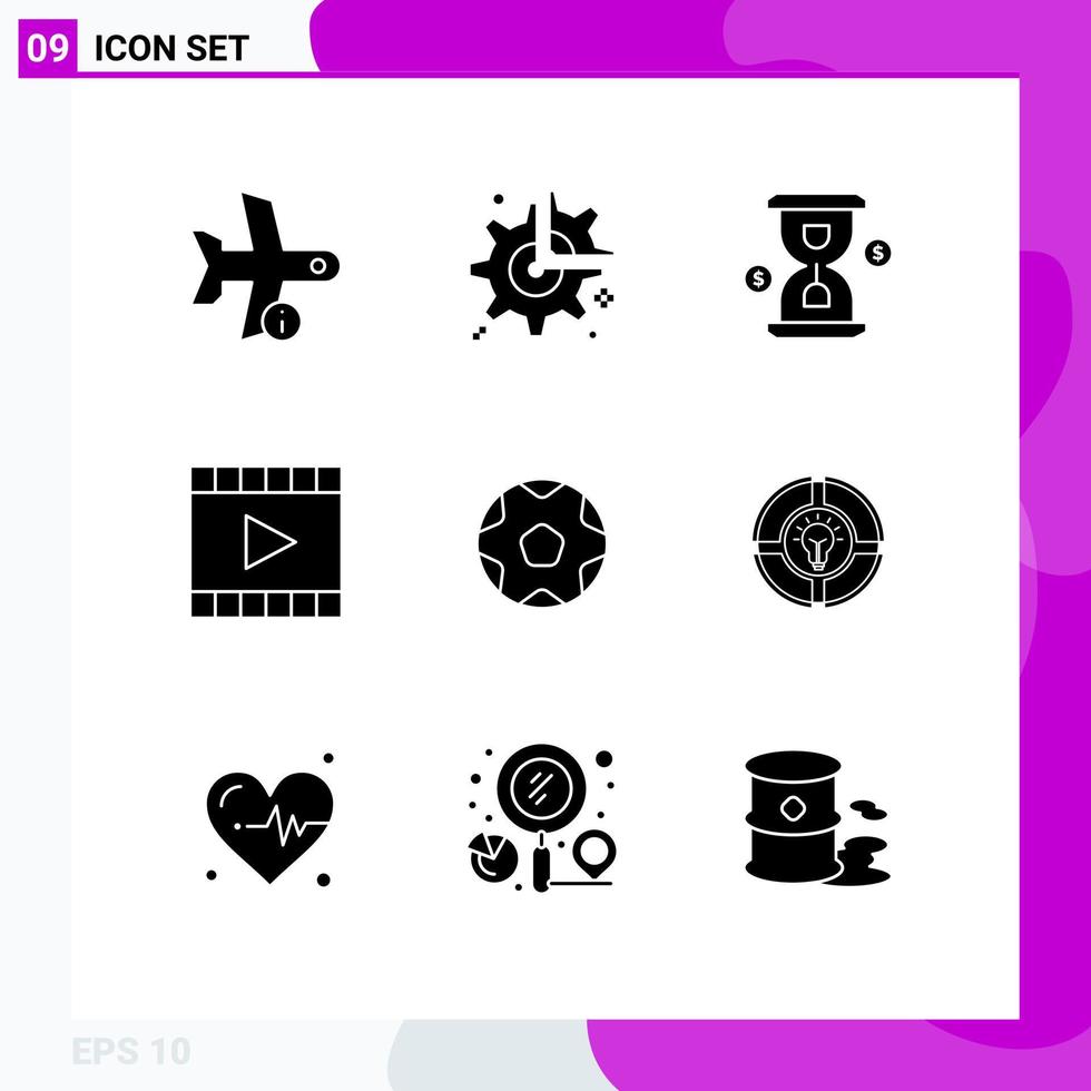 User Interface Pack of 9 Basic Solid Glyphs of player media player break media loading Editable Vector Design Elements Free Vector