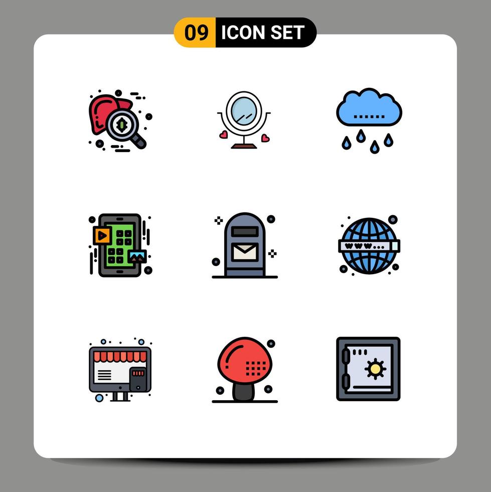 Set of 9 Modern UI Icons Symbols Signs for box ui heard menu thanksgiving Editable Vector Design Elements