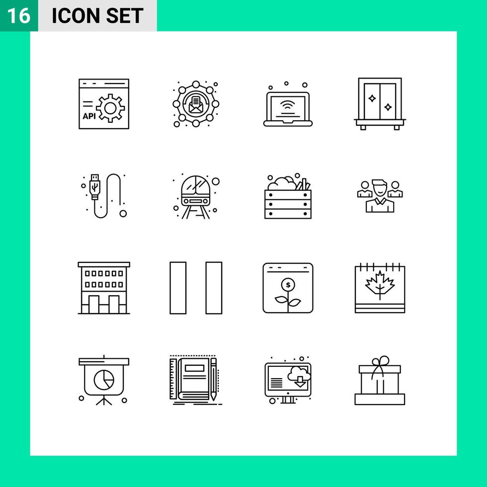Pack of 16 Modern Outlines Signs and Symbols for Web Print Media such as dressing cupboard message window iot Editable Vector Design Elements