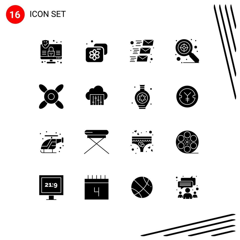 16 Universal Solid Glyphs Set for Web and Mobile Applications connection fan mail cooler search Editable Vector Design Elements Free Vector