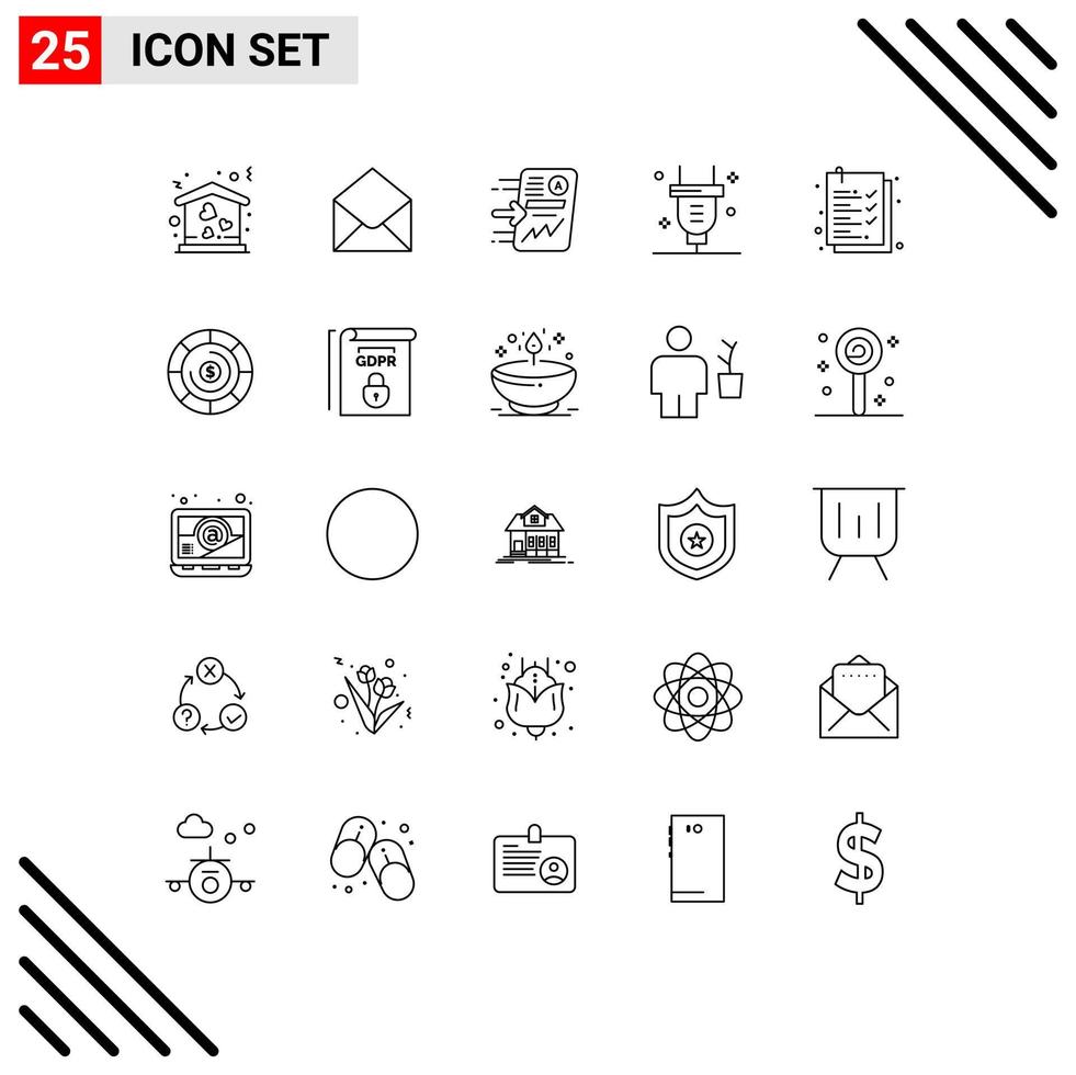 Line Pack of 25 Universal Symbols of check list switch file power chart Editable Vector Design Elements