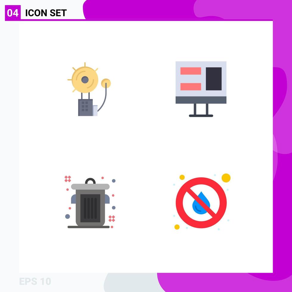4 Universal Flat Icons Set for Web and Mobile Applications alarm editorial fire monitor drop Editable Vector Design Elements