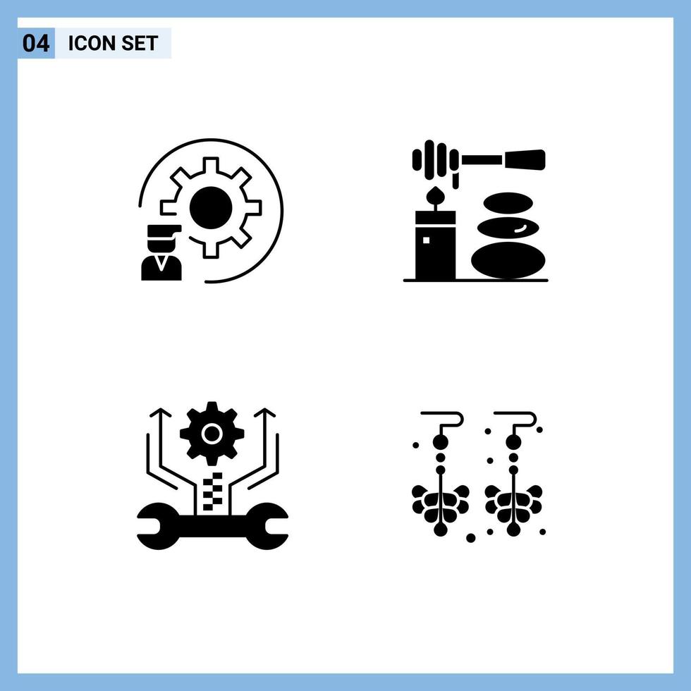 Group of 4 Modern Solid Glyphs Set for coding control process relax setting Editable Vector Design Elements Free Vector