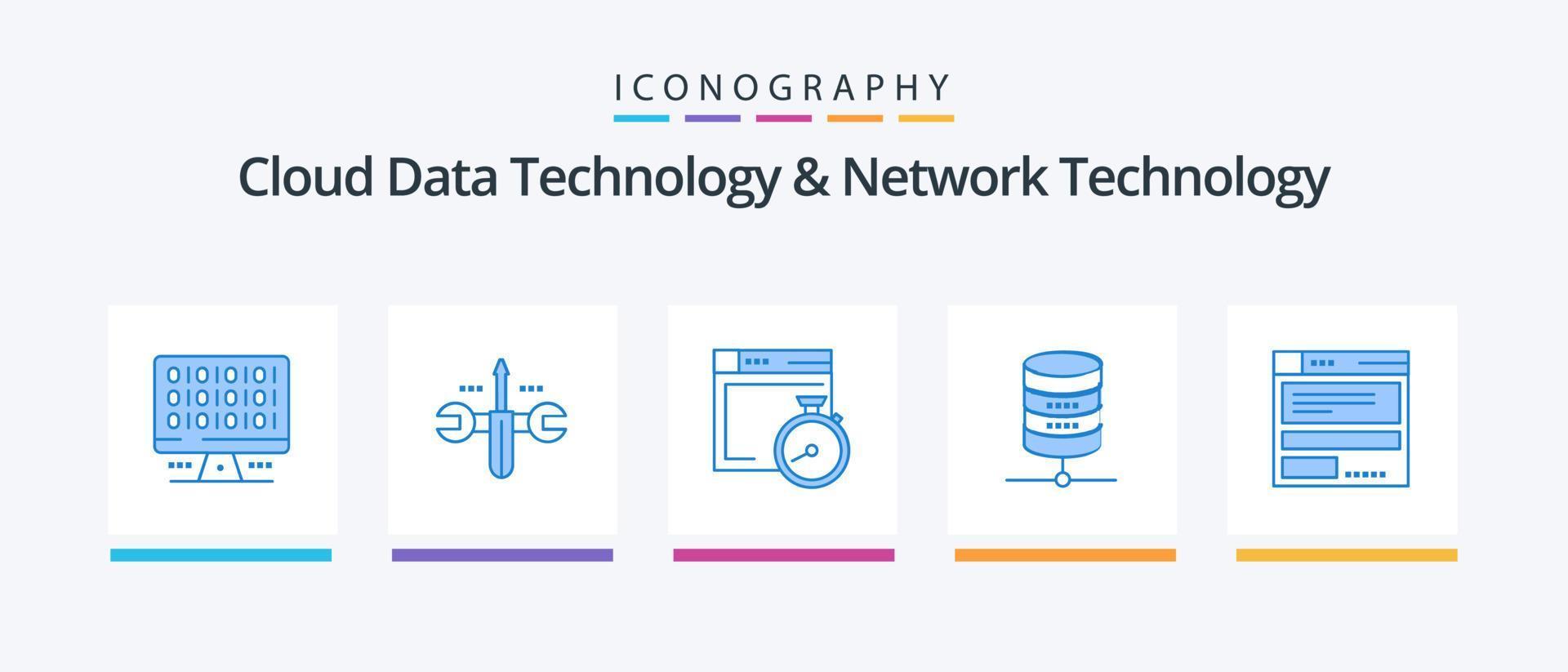 Cloud Data Technology And Network Technology Blue 5 Icon Pack Including browser. computing. file . money . doller. Creative Icons Design vector