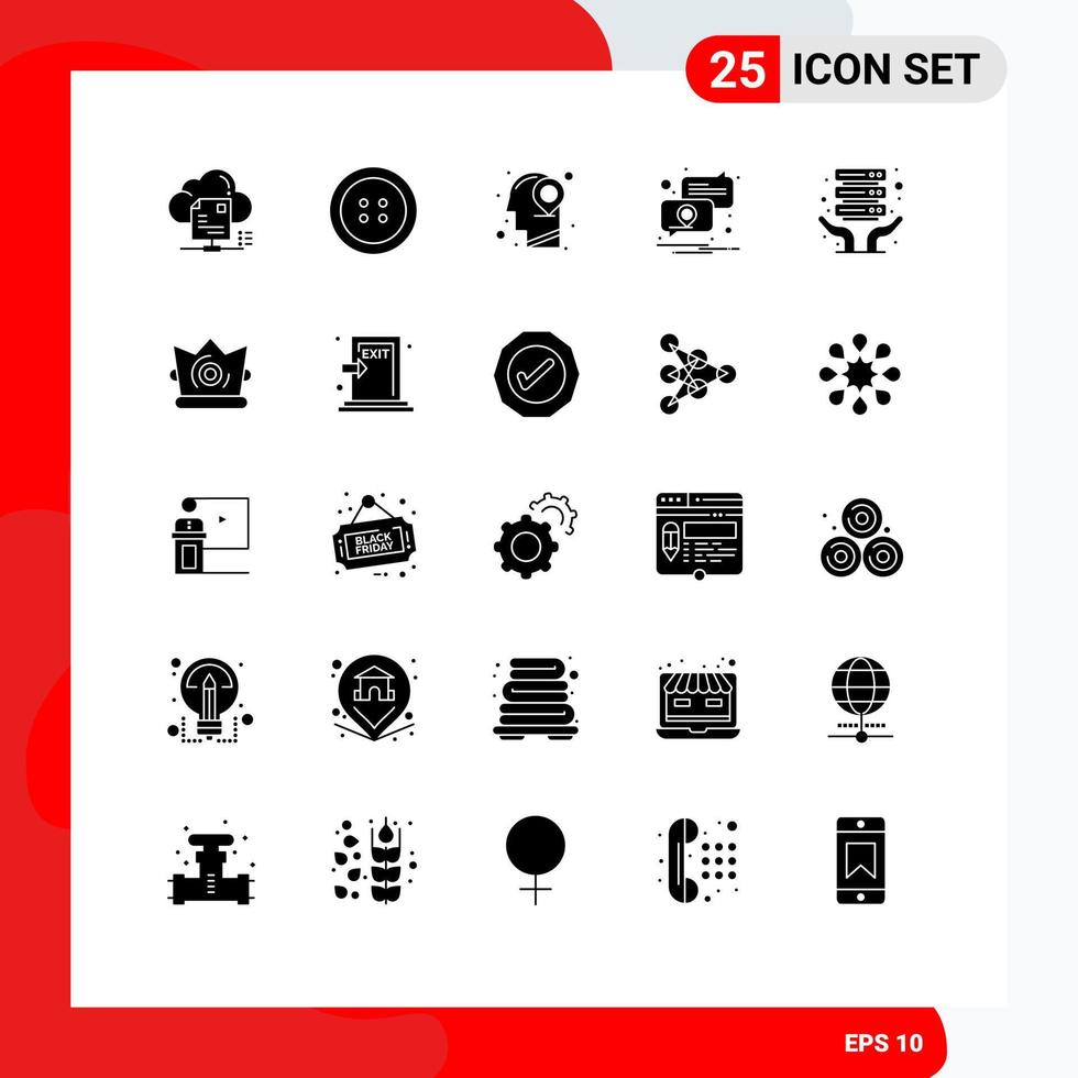 Pack of 25 Modern Solid Glyphs Signs and Symbols for Web Print Media such as shared internet hosting location placeholder notification Editable Vector Design Elements