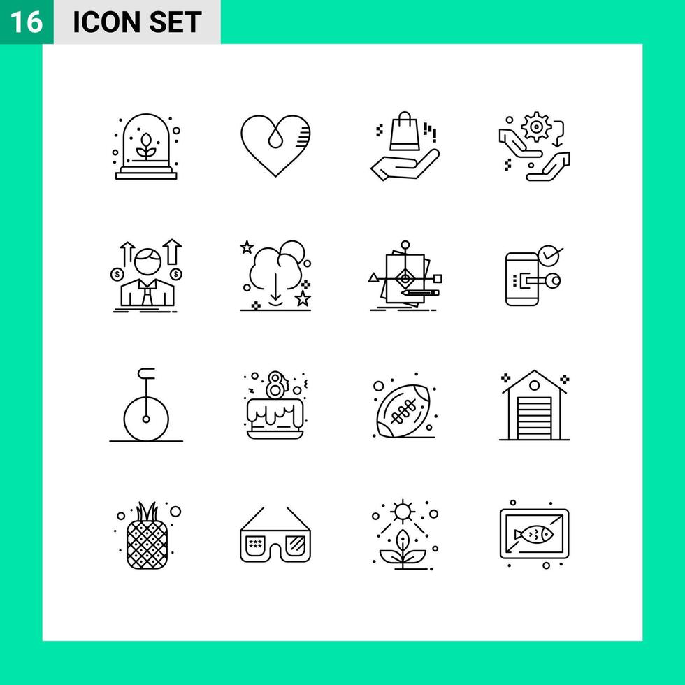16 User Interface Outline Pack of modern Signs and Symbols of man setting ahnd configuration hand Editable Vector Design Elements