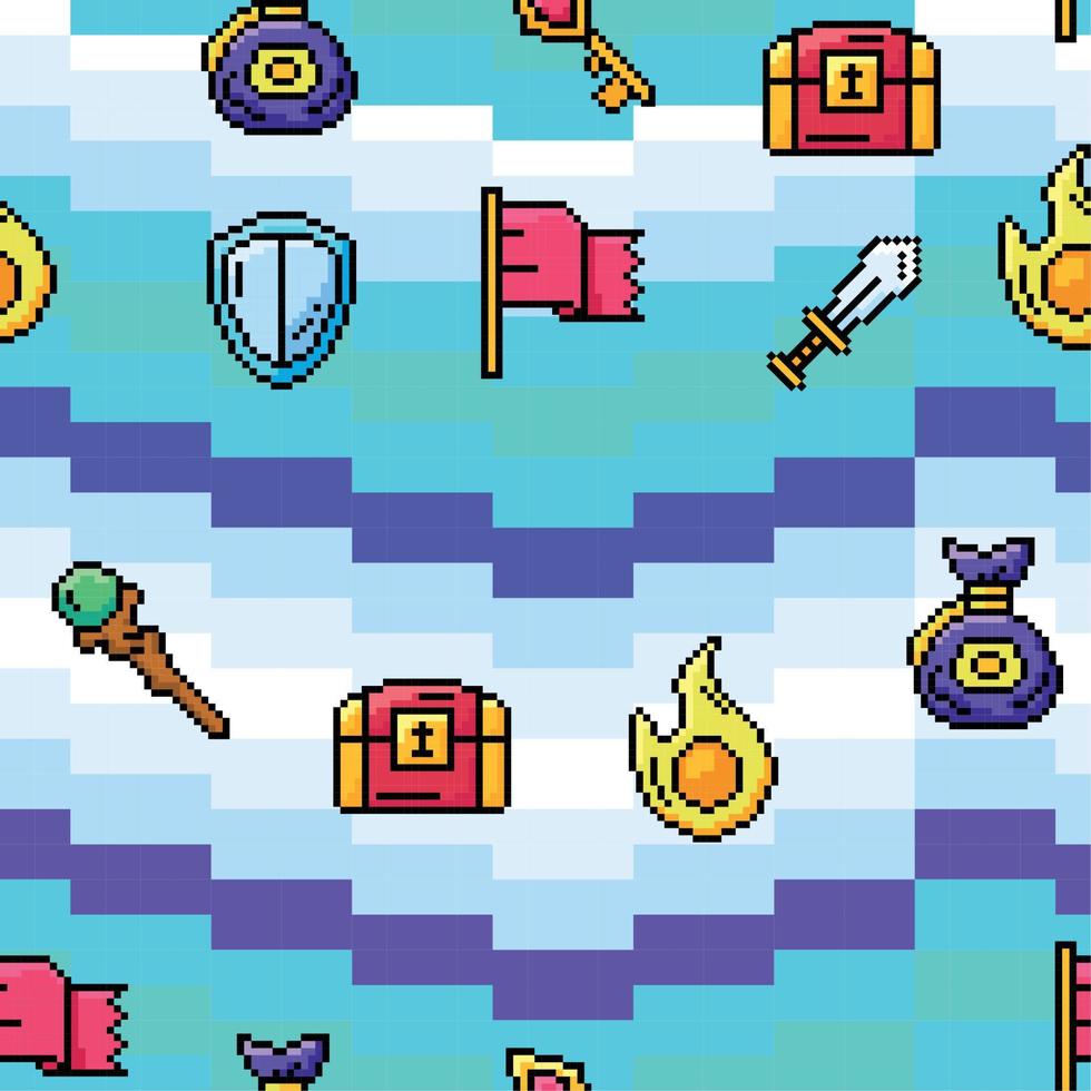 Videogame seamless pattern background with shields and chest icons Vector Pro Vector