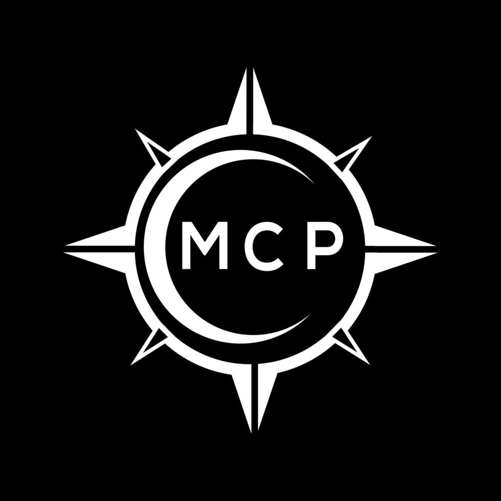 MCP abstract monogram shield logo design on black background. MCP creative initials letter logo. Pro Vector