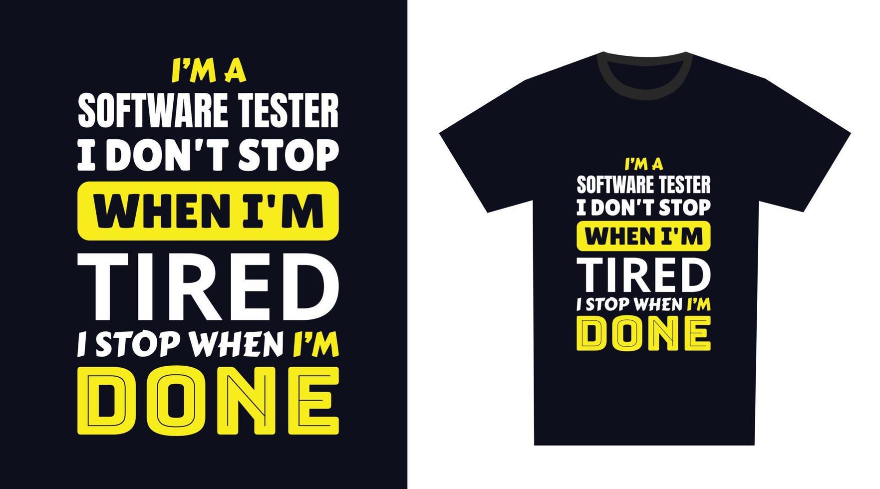software tester T Shirt Design. I 'm a software tester I Don't Stop When I'm Tired, I Stop When I'm Done Free Vector