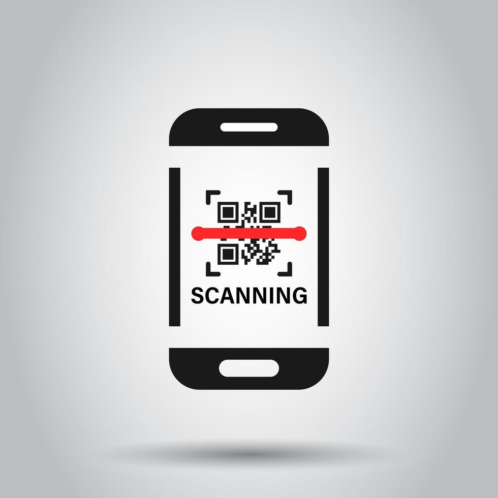 Qr code scan phone icon in flat style. Scanner in smartphone vector illustration on isolated background. Barcode business concept. Pro Vector