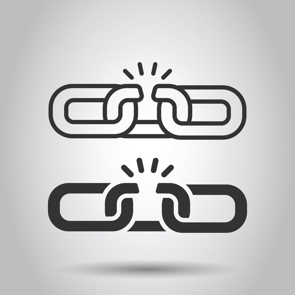 Chain broken icon in flat style. Network hyperlink vector illustration on white isolated background. Attach business concept. Pro Vector