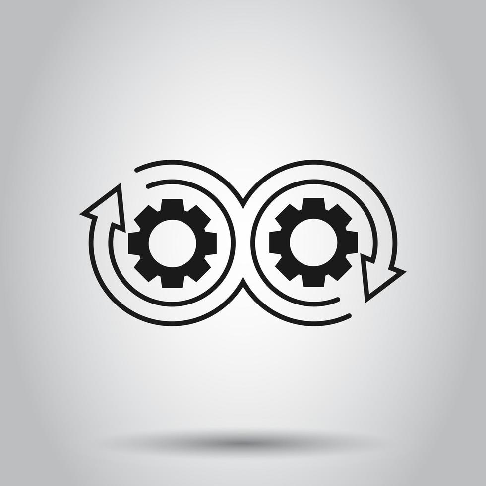 Development icon in flat style. Devops vector illustration on isolated background. Cog with arrow business concept. Pro Vector