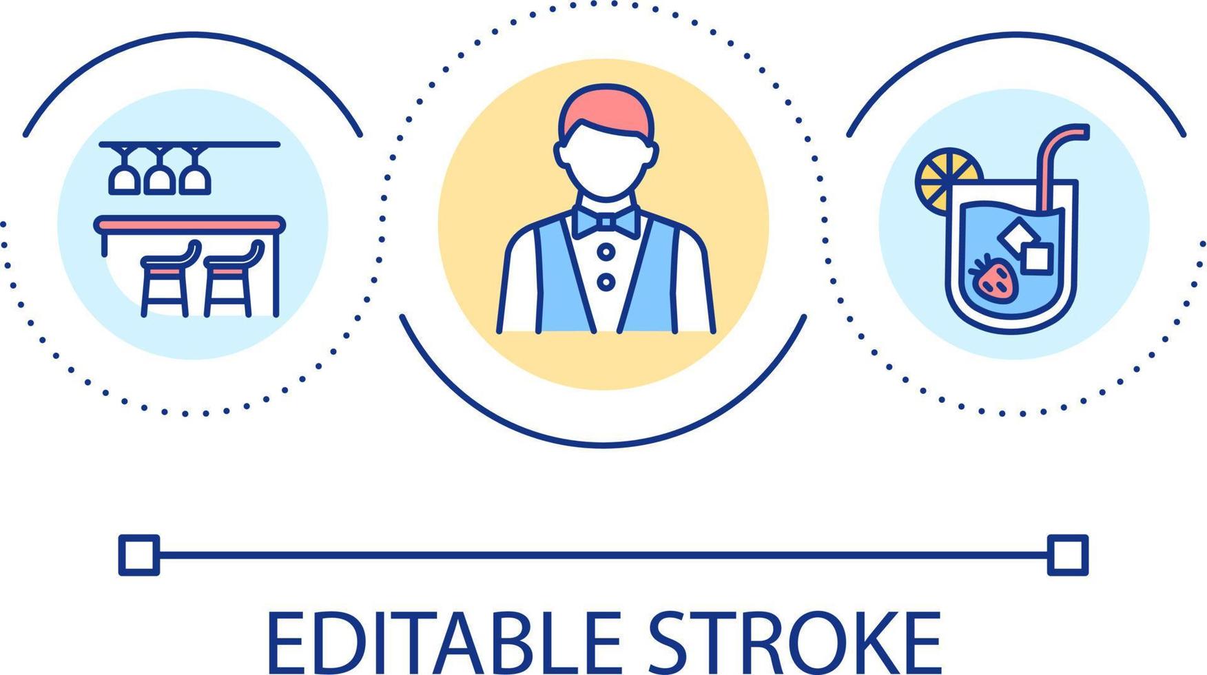 Bartender job loop concept icon. Serving alcoholic drinks abstract idea thin line illustration. Bar business management. Barman duties. Isolated outline drawing. Editable stroke Pro Vector