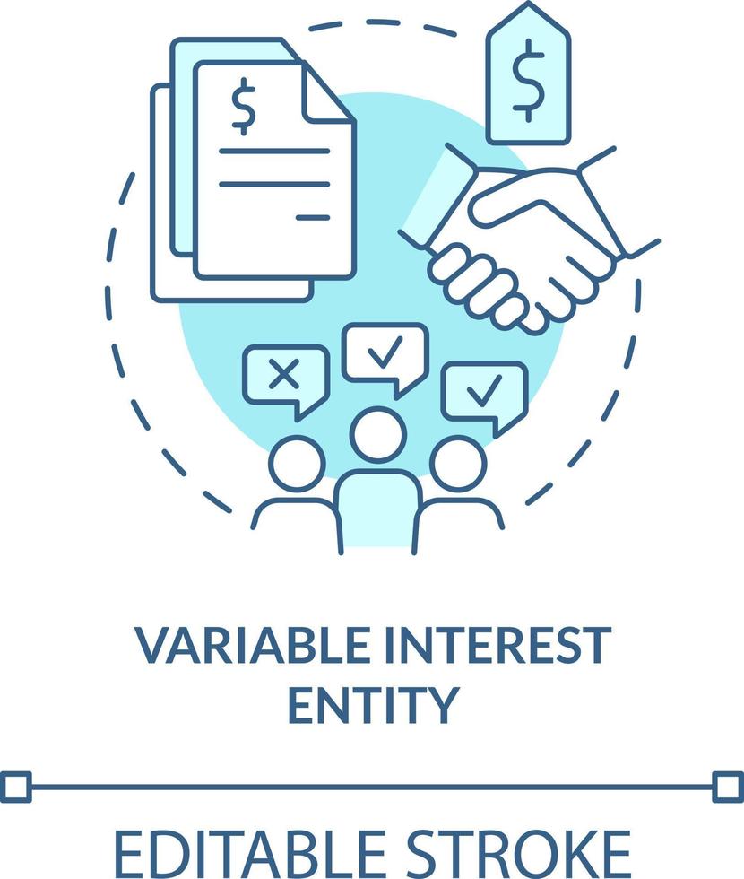 Variable interest entity turquoise concept icon. Business consolidation strategy abstract idea thin line illustration. Isolated outline drawing. Editable stroke Pro Vector