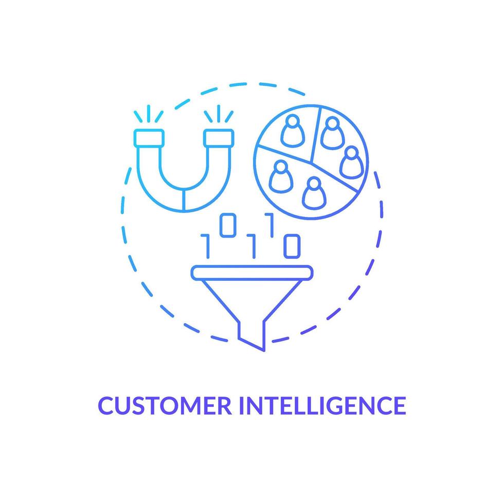 Customer intelligence blue gradient concept icon. AI and data science solution for business abstract idea thin line illustration. Isolated outline drawing Pro Vector and Pro SVG