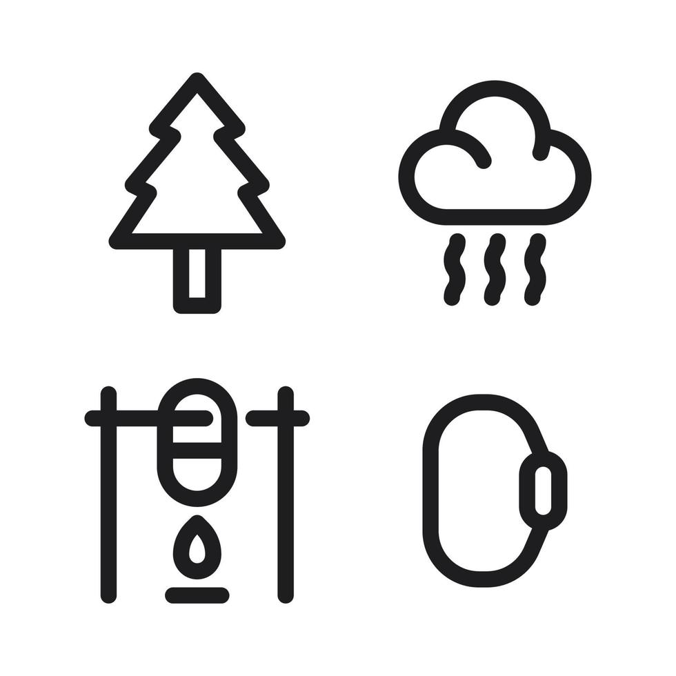 Adventure icons set. Tree, cloud, campfire, carabiner. Perfect for website mobile app, app icons, presentation, illustration and any other projects vector