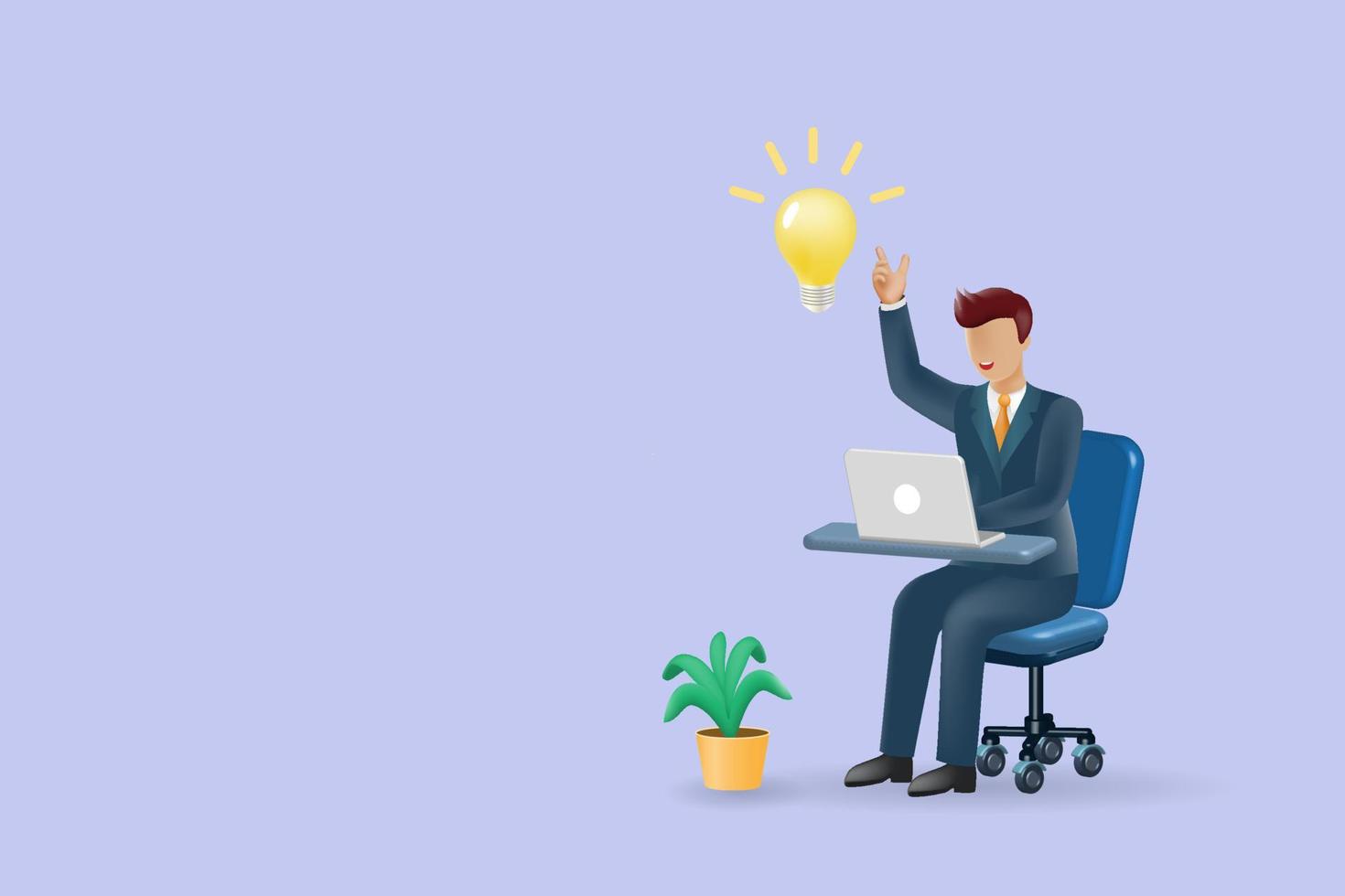 Businessman working on computer with lightbulb. Business growth with creativity ideas and inspiration. Successful solution and smart achievement in working occupation, strategy planning concept. Pro Vector