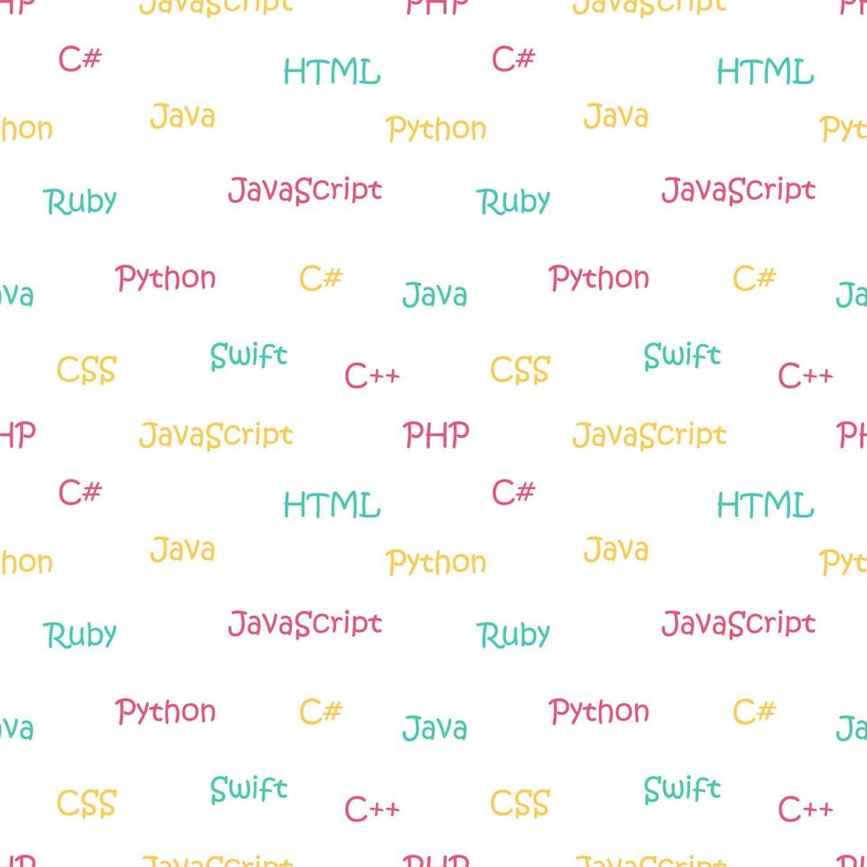Vector seamless pattern with programming languages. Names of machine languages. Black and white. Pro Vector