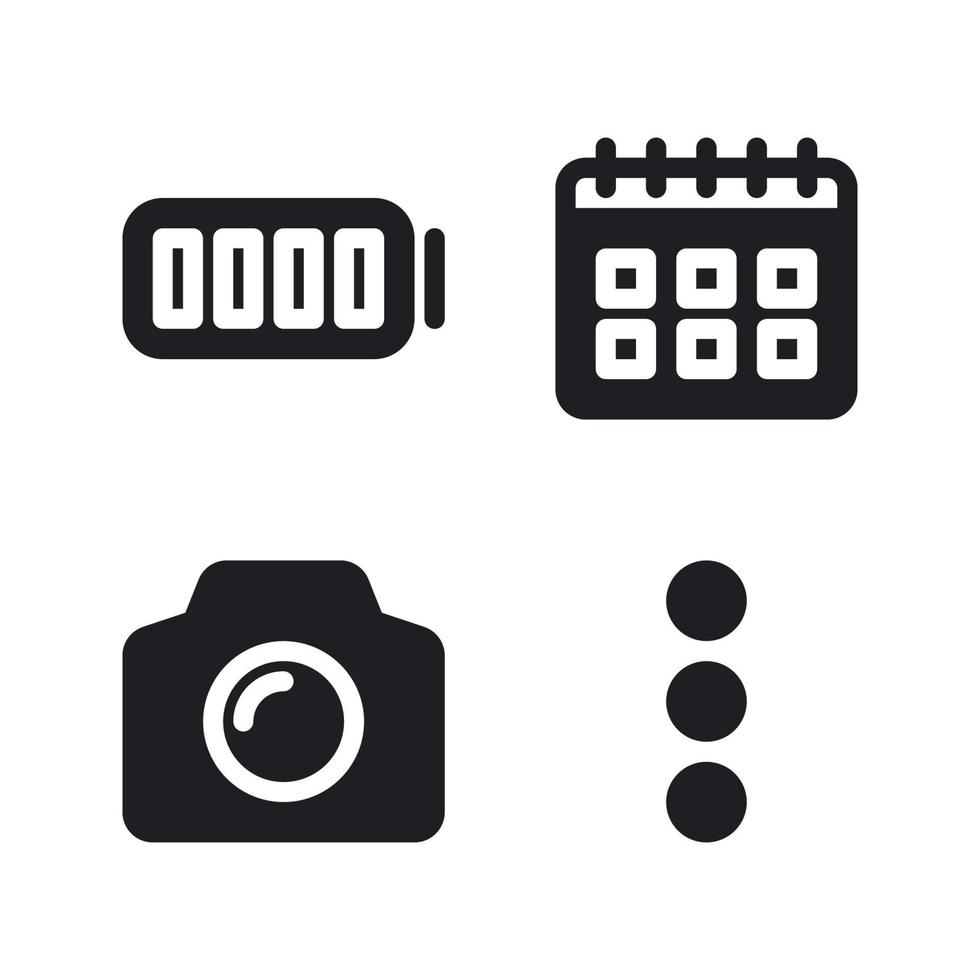 User Interface icons set. Battery, calendar, camera, calendar. Perfect for website mobile app, app icons, presentation, illustration and any other projects vector